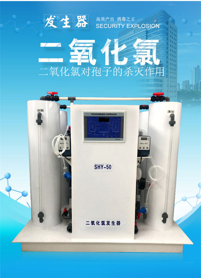 二氧化氯發生器是一種集化學反應、精密計量、電子控制、閉環電子監視系統為一體的精密可靠的高科技產品,整個系統主要由精密計量泵、反應器及流量監視系統組成,采用整機集成為一體的集成安裝方式,因此結構緊湊,安裝方便,性能可靠,維護容易。