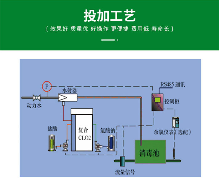 通過微處理器控制的二氧化氯發生器的發生量可直接在表盤上設定。當設備采用全自動方式運行時,投加量可預先設定,LCD控制顯示器可提供當前二氧化氯發生量及流經主水管流量等信息。此外,二氧化氯器還可根據待處理水量的大小,通過測控儀表自動控制其發生量。